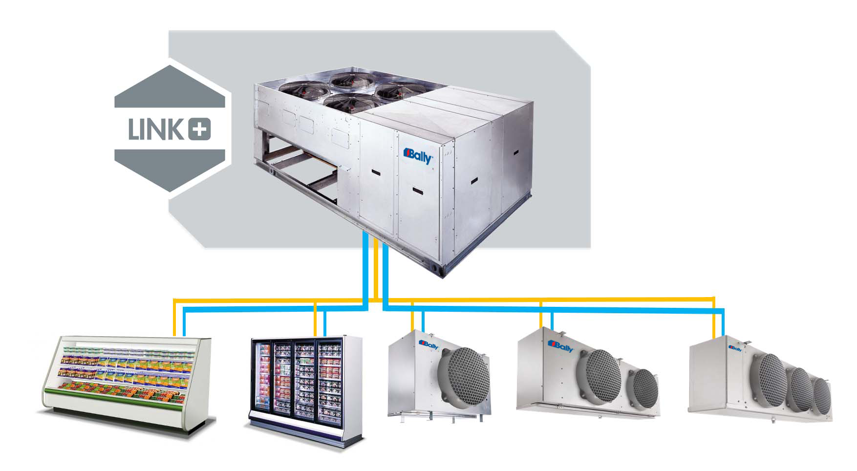Les unités Link+ combinent un système de compresseurs parallèles et un condenseur en un seul ensemble conçu pour supporter des conditions extérieures difficiles. Peut accueillir 8 compresseurs à spirale (de 8,5 hp chacun) / 7 compresseurs à spirale (17 hp chacun) et jusqu’à un condenseur à ventilateur de 2 x 5. Des réservoirs horizontaux et circuits de dérivation peuvent être installés. La conception du boîtier en tôle donne un accès complet aux composants intérieurs.